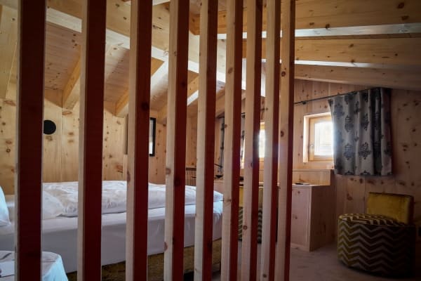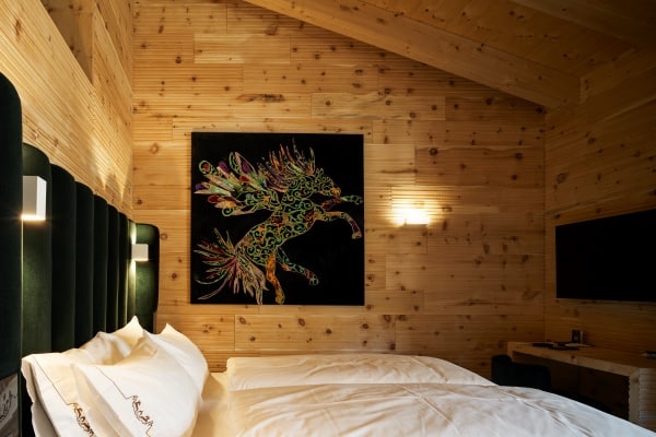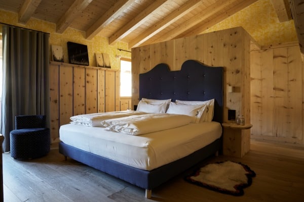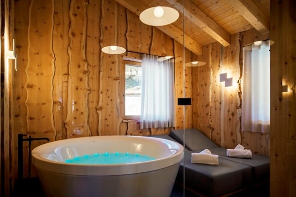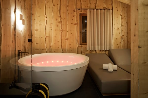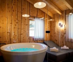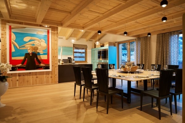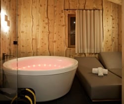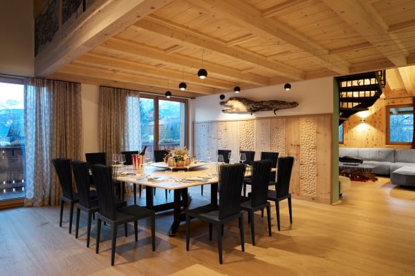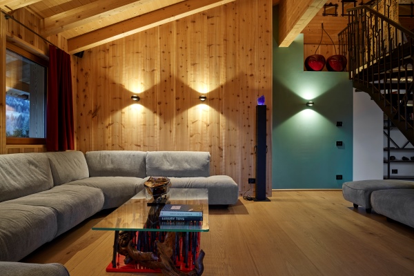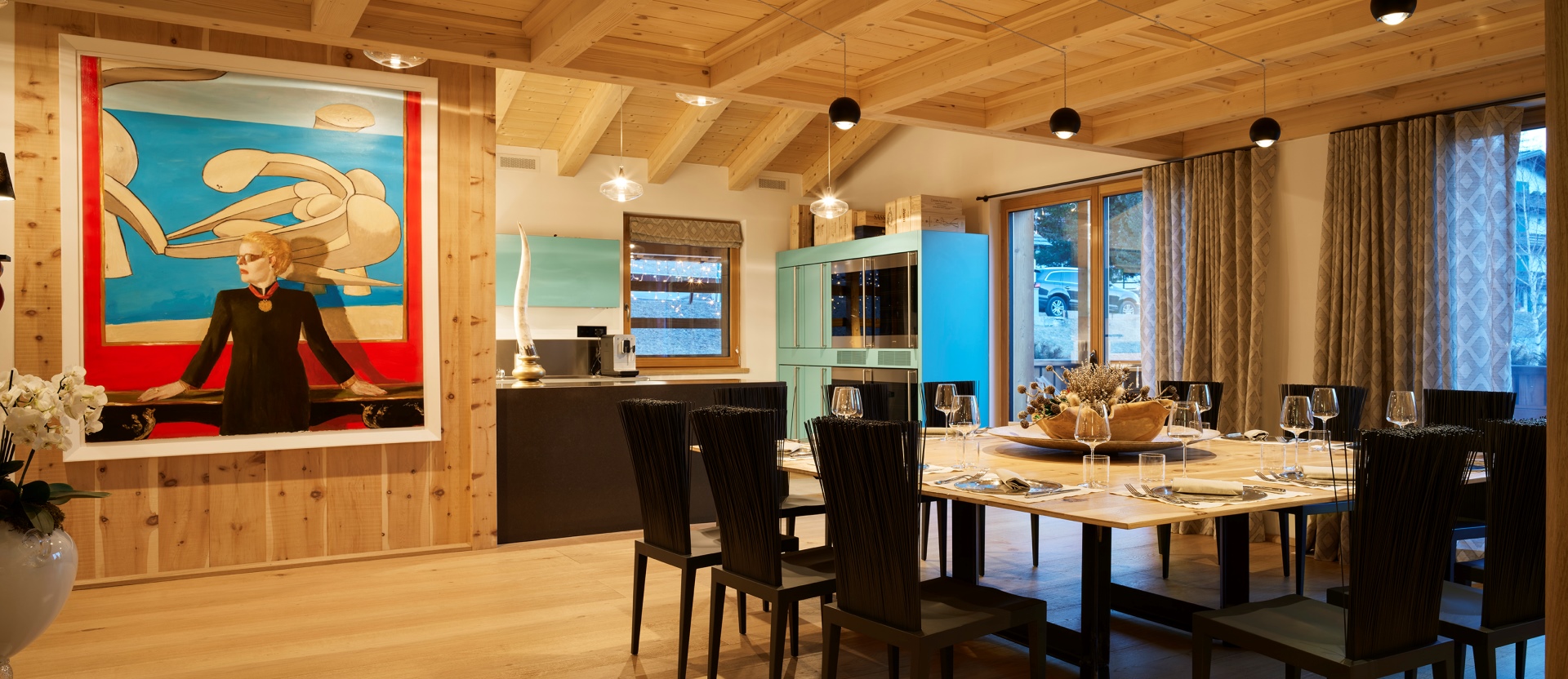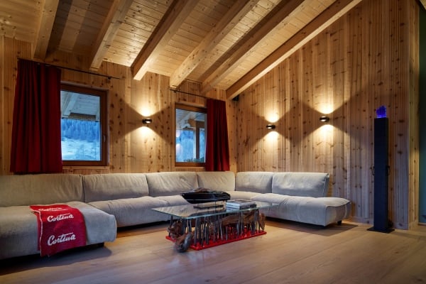A short car ride of under five minutes gets you to the very centre of the glamorous Cortina d’Ampezzo, a fashionable resort town surrounded by the spellbinding scenery of the jagged Dolomites and the centre of the world-leading Dolomiti Superski infrastructure of mountain lifts and pristine ski slopes. Venice is the nearest airport which, by car, is a little under two hours away. The view is gorgeous from the chalet apartment, which stands secluded within the private grounds at one of the most notable family-owned hotels in the region. The lovely traditional chalet apartment facade belies the more contemporary aspects of construction designed to house a thoroughly modern interior of open-plan living areas laid out beneath cathedral-like ceilings. The impressive interior design is eye-catching; a spread of light wood walls and floors, double-height ceilings and a similarly imposing complement of full glazing. The spatial flow of lounge to dining area open to a galley kitchen is quite appealing, with the overall ambience bright and alpine fresh from lots of natural light streaming inside. The high ceilings allow a second lounge area on a mezzanine overlooking the main living area; a spot likely to be the equally favoured hangout for the younger family members to watch movies. Further upping the luxury quotient within your private sanctuary is the refuge of your exclusive in-house wellness area with sauna, hammam and Jacuzzi in which to further pamper your senses.