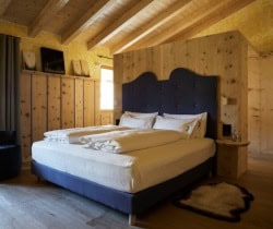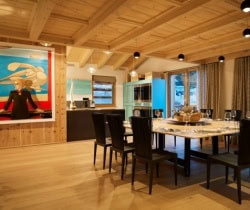 This elegant chalet apartment has 4 charming bedrooms en suite for a maximum capacity of 7 persons. There is a king-size master suite with a walk-in wardrobe and the view is just as fantastic from the other large suite. Kids will particularly adore the bedroom up under the eaves. There is also a single bedroom en suite available for your discretionary use. The massive sofa in the lounge welcomes everybody to gather and cosy up after an exhilarating day of activities outside. This chalet apartment is a private sanctuary of luxurious comfort, which is perfect for a holiday of well-deserved rest, relaxation and spending precious moments with the family.
