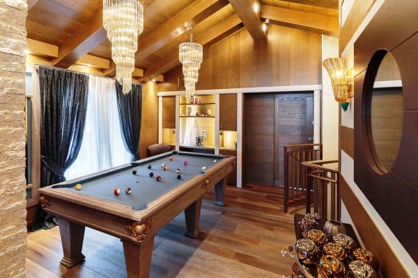 | First floor: | Living room with fireplace, Guest bathroom, Pool table and Dining table, Kitchen, Terrace, Large en suite master bedroom with dressing suite (double shower), En suite double room (shower) |