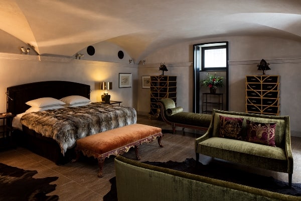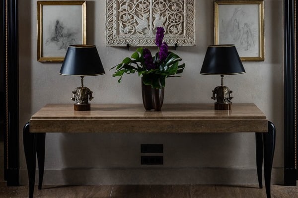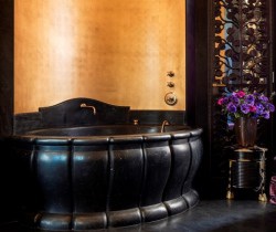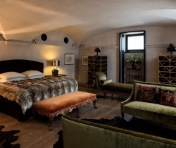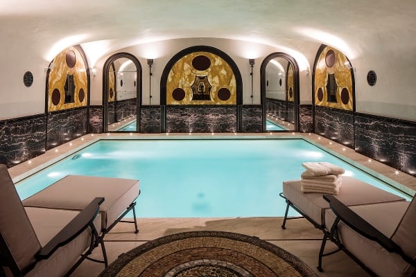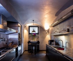 Sleeping up to 8 in 4 high quality and air conditioned bedrooms en suite, the villa is distributed over 3 levels and includes an impressive spiral staircase coil and internal lift. There are 2 magnificent upper level master suites, each with dressing room, custom-made standalone stone bathtub and private terrace. The 2 other ample luxury suites share the lower ground floor with an ornate Roman spa with large, sunken and lit indoor pool. For a more indulgent soak there is the rooftop Jacuzzi with a 360° panoramic view over cypress trees and across the city; arguably one of the most enviable Roman settings from sunset and beyond.