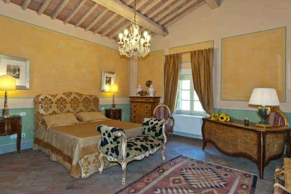 In keeping with the villa’s gentle and enchanting atmosphere, the unique interiors are elegantly furnished with style and charm and offer 11 frescoed guestrooms all with en-suite facilities for up to 22 guests. With two living rooms, a study area, a billiard room, a grand banquet room and the shady retreat of an arched loggia the villa grants to its guest a luxury and relaxing environment. A private chapel is available for weddings and other special celebrations.