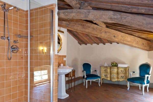 The Villa, nestled below Monte Pisano on the southern outskirts of Lucca, is an historic 19th century villa set on a stunning estate of hill terraced olive groves, elegant Italian gardens and pine forest hilltops with castle ruins. Panoramic views reach out across Lucca and Nottolini’s aqueduct and a pretty walled garden provides a peaceful and relaxing setting for the swimming pool and summerhouse with workout room.