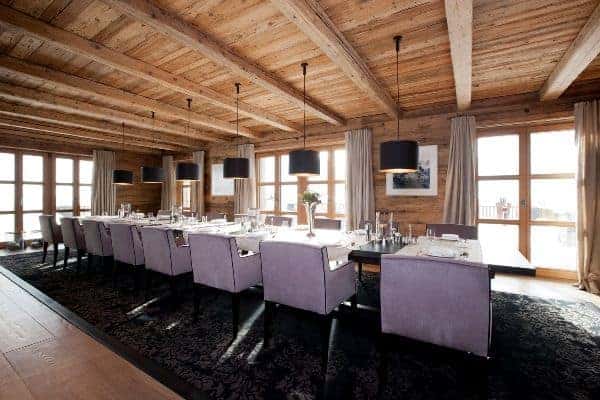 Stunningly arranged over 5 floors the chalet is able to accommodate up to 22 guests (18 adults and 4 kids in a bunkroom) in 10 stylish and finely furnished bedrooms en suite with private balconies. Each private suite has sitting and dressing areas and bathroom provisions are top-of-the-range. A butler is on hand to ensure your every comfort and a team of chefs will satiate every appetite with high-class international and traditional Austrian cuisine, with meals served either in the chic dining area that is lined by an imposing bank of floor-to-ceiling glazing opening out to the terrace and majestic alpine scenery, or in a traditional ‘stüberl’ that’s great for fun fondue evenings. Afterwards, you may work off the calories with techno-gym or do a few laps in the swimming pool or aid digestion at a more relaxed pace by submerging yourself into either of the two outdoor Jacuzzi. On sunny days, at any time of the year, you can lounge on the outside terrace, which is a fabulous spot for soaking in the rays of clear sunshine, lunching al fresco and gazing at the sheer beauty all around; morning, noon and night.