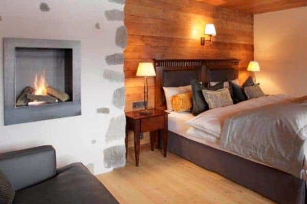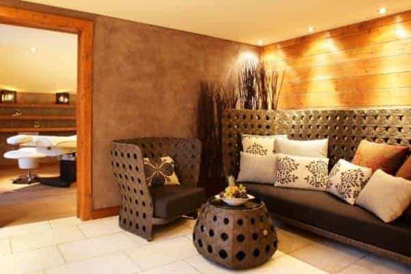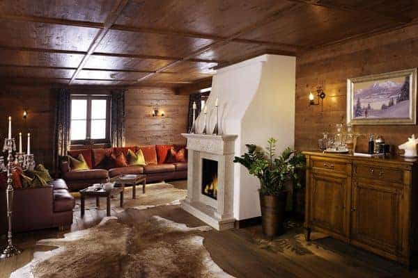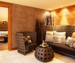 Snow is assured the entire winter season in the elevated hamlet of Zürs (1720m), next to the village of Lech looking out to the Alberg massif and the location of a grand chalet. Adapted, divided and refurbished to now comprise three suitably upscale luxury apartments that grant guests privacy and the exclusive service of a five-star hotel. Suitably elegant common areas are arranged on the lowest level and on the top floor of the chalet: a lounge bar with dining area, a cigar room and a pool, as well as a sumptuous spa with sauna, relaxation and massage rooms, ice room, steam bath, rain showers and enthralling mountain views respectively. Sandwiched between these floors are the three apartments: 2 adjacent and 2 arranged over two levels. The décor is a clever integration of natural stone features with exemplary wood floors, wall panelling and ceilings. The muted tones of dense luxury fabrics and upholstered furniture, wall trophies and a cigar room induce an ambience of tranquil cosiness, akin to a gentleman’s club, but with the bonus of incredible mountain scenery all around.