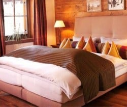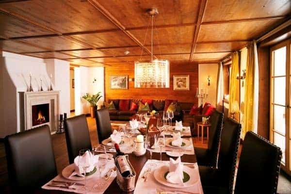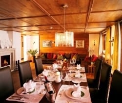The chalet apartments are configured in either an arrangement of 3 or 2 double bedrooms with contemporary en suite bathrooms. Two apartments enjoy also the benefit of having a steam room within. A most recent addition to the chalet is a vast 70 sq. m top floor super king-size bedroom en suite (stand-alone shower and bathtub) and living room with wide fireplace. This is a master suite that can be available in combination with any of the other apartments and, altogether, a grand total of up to 18 guests can reside in the total comfort of this property. Gourmet meals can be served either in the privacy of the dining room of your own apartment, or in the lounge bar, where you can also entertain visitors.