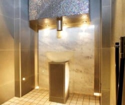 | Top floor (common): | Spa with sauna, ice room, steam bath, rain showers and a relaxation room with fireplace; massage and treatment room with soft pack system |
