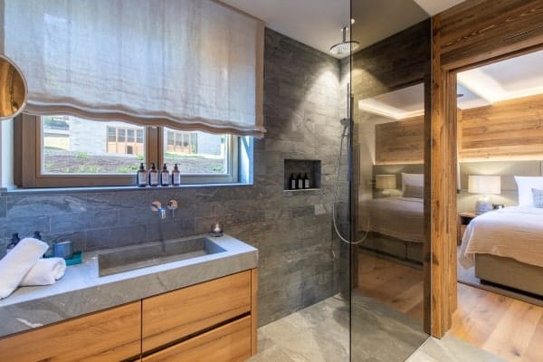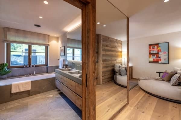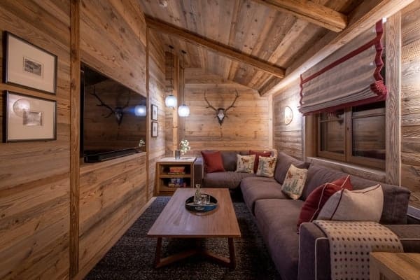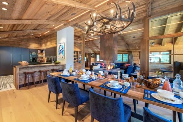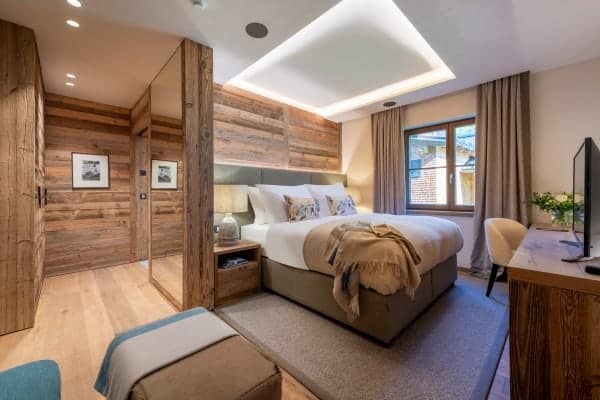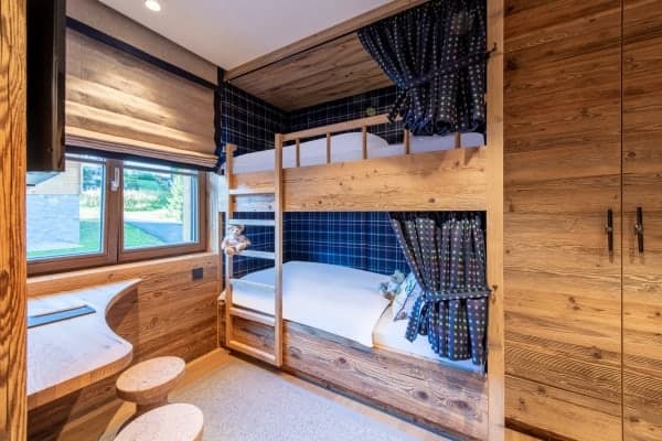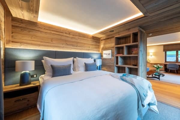 Consisting of 400 sq. m and spread across 4 levels served by elevator and staircase, the detached chalet sleeps a capacity of 12 and has 6 luxurious, colour-themed bedrooms en suite that are distributed over the middle floors of the chalet. These include a master bedroom boasting an impressive walk-in wardrobe, velvet sofa lounge, balcony access with en suite freestanding bath and separate rain shower, as well as a modern carved-wood bunk room ideal for 2 kids. Enjoy the beauty of the scenery from within or outside on, the fully-furnished terrace on the balcony, which offers an invigorating setting and stylish comfort for breakfast whilst basking in the morning sunshine, or with an aperitif in hand to watch the glow of dusk fall across the mountains and the resort. Later on, for more indulgent relaxation and to pamper body and soul, there is the delightful retreat of the private wellness area to look forward to.