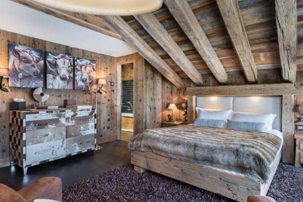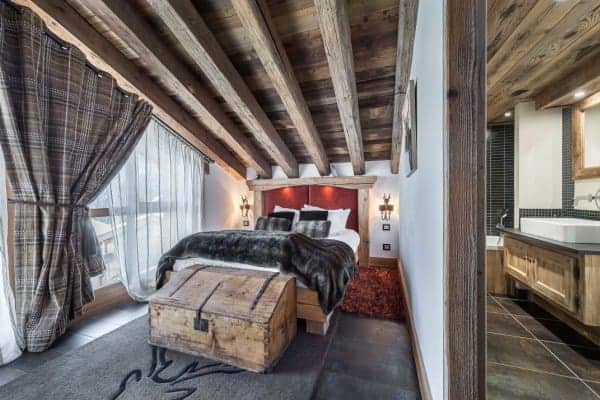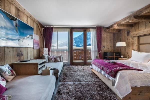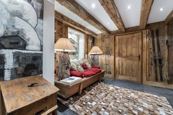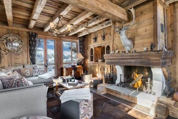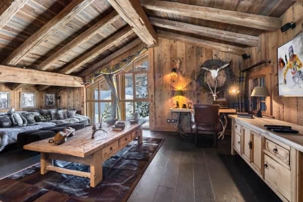 A beautiful and modern mountain chalet offers plenty of rustic charm from its location nestled within Provères, a serenely quiet hamlet at the foot of the slopes in Courchevel 1550. Situated a few hundred meters from the slopes, the ski lifts and the centre of the resort, this commendable luxury property is blessed also with easy access to slopes of the Three Valleys ski network including the local hundred and fifty kilometres of pistes served by multiple lifts. The jagged Massif de la Vanoise towers above the valley and this unspoilt and tranquil hamlet made of a cluster of quintessential and traditional mountain homes within easy reach by gondola to the resort centre. The lovely chalet holds to the local architectural tradition of a traditional wood façade and stone column construction. The interior is modern and boasts fine detailing and an arrangement of vaulted beam ceilings. Along with exposed timbered walls the décor echoes the rusticity of vintage mountain lodges. The large, sturdy log fireplace adds a toasty cosiness, hunting, antique skiing and alpine regalia are displayed with panache, chandeliers made from antlers hang overhead and a scattering fur and animal hide underscore an authentic charm. The convivial double-height and open-plan main living area includes a mezzanine TV area and glazing to match the height so that there is plenty of light and superb views of the mountains. Outside the covered and external terrace is spacious enough to include a sitting area and Jacuzzi for outdoor relaxation and from which to savour the view ‘al fresco’.
