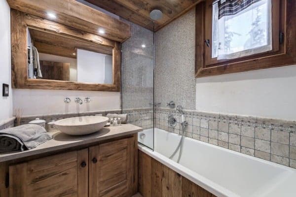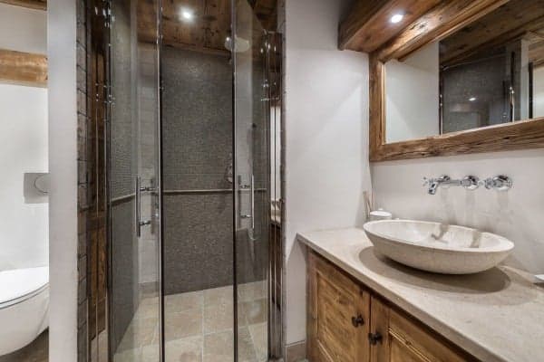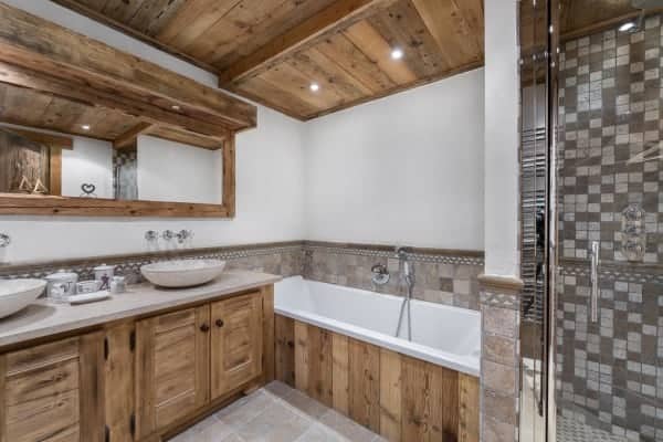 This luxury chalet spreads across 5 levels with the main living areas at the top of the chalet to reap the full benefits of the scenic view. There are 5 bedrooms for 10 guests, each spacious with contemporary and bright en suite bathrooms decorated with mosaic tiling. With the ski-lift a just a short stroll from the chalet, it is possible to start bright and early on the slopes. At the very top of the chalet is a mezzanine snug above the main lounge which is perfect for kids to catch up on their favourite television shows and games, whilst the elders stretch out to enjoy relaxing après-ski and evening of entertaining warmed by the roaring log fire. Nightly, outside, there is an unobstructed view of glistening, snow-draped and forested valley slopes.