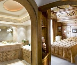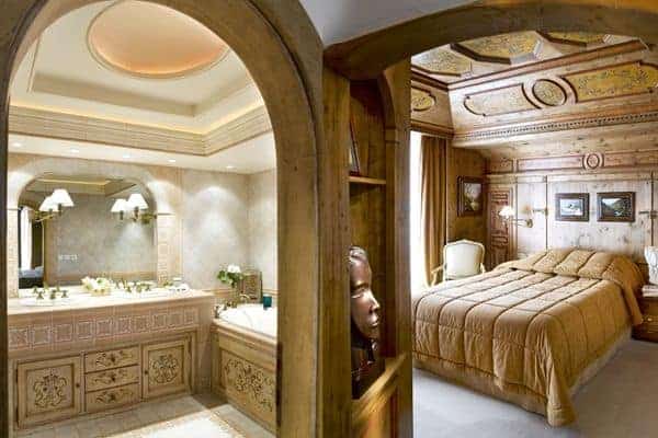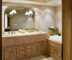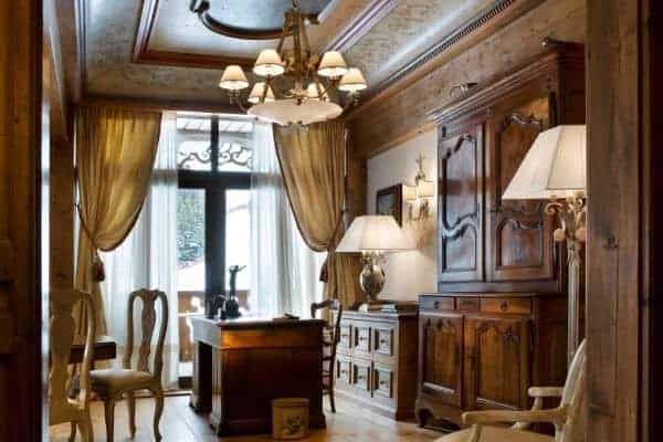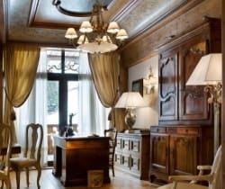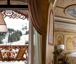 Lately, some traditional luxury hotels in Courchevel have refurbished some of their top floors to offer apartments with all the traditional luxury hotel services. This is what we call VillaHotels, because they aim to offer the best of both worlds: the unrivalled bespoke services of a hotel in a completely private atmosphere that is normally reserved for chalets. This apartment, located in a privileged sixth floor facing La Croisette and, therefore, at the starting point of the largest ski domain in the World, follows this principle: panoramic views, exclusive services and undisturbed privacy. The apartment decor departs from the traditional lines of luxury alpine hotels, without the profusion of wooden beams and panelling. The apartment radiates refinement and elegance through its 19th Century decor and fine fabrics.