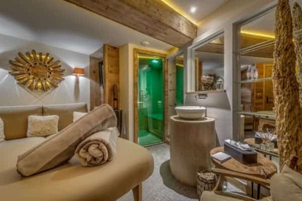 Here is one of the finest private luxury chalets in Courchevel, which lies at one end of the world’s largest lift-linked ski area with hundreds of kilometres of ski slopes and terrain to suit everyone from beginner to expert. This location of this exclusive ski-in/ski-out property is in the highest and most prestigious area of Courchevel and faces the Bellecote piste, which runs down to the heart of the resort. Expertly renovated and refurbished into contemporary open-plan and split-level arrangement of living spaces, the chalet also boasts a beautiful and panoramic view over the French Alps from almost every window as well as outside of its south-facing terrace. The appealing interior décor uses an abundance of restored wood in the vaulted ceilings and for the polished floors yet retains a modern and tranquil ambience. The main living-dining area on the top level of the chalet offers elevated views over the resort for a delightful setting warmed by a dual-aspect fireplace and spread with deep and plump seating comprising of rich leather and plush upholstery. Adding to the flourish of the interior design are the glass-enclosed kitchen stocked with state-of-the-art appliances and a truly impressive home spa; the latter comparable to the best of its kind anywhere. Wood pillars and beams continue the classic alpine theme throughout the multi-level spa, which unusually lies off the ground floor entrance hall and holds an impressive indoor swimming pool with mood lighting and jet stream. There is also a spacious massage/treatment room, which, along with a hammam and a sauna on different levels, is designed for blissful relaxation to recuperate following a day of activity out on the slopes and out and about around this exciting resort.