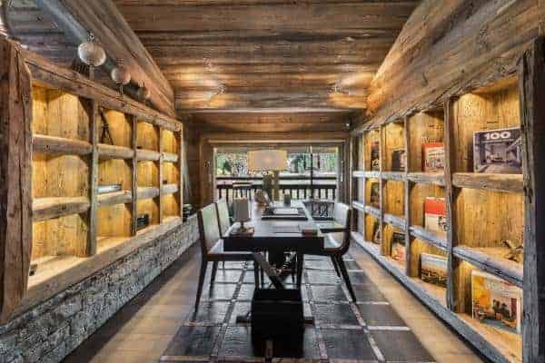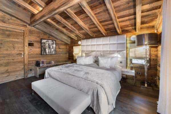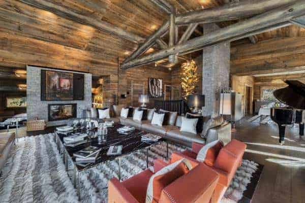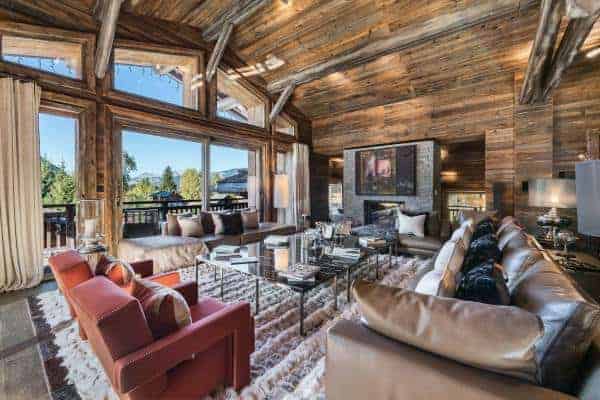 The large and luxurious chalet is possible to ski out from and is arguably one of the finest and most sought-after private residencies in chic Megève; a resort which has Mont Blanc in the backdrop and one that remains also one of the smartest in the French Alps. Located in the Haute Savoie, the resort nestles in a huge ski area of more than four hundred kilometres approximately an hour’s drive from Geneva international airport. Megève has long been a favourite for less ostentatious of the well-heeled alpine and so bestows plenty of luxury, designer boutiques, fine restaurants and a more relaxed après-ski scene. The chalet itself is situated in the resort’s principal enclave of Mont d’Arbois and boasts fine panoramic scenic views and an outstanding design that emanates from and majestically incorporates the traditional stone and timber construction that is typical to the region. Its imperious façade features an entrance staircase that swoops up to the second of the chalet’s three levels. The lowest of these is designed into a most engaging arrangement of spaces devoted to wellness and relaxation. A corridor, fully glazed on both sides runs counter to the impressive wine cellar and the superbly designed and games/television/cinema lounge and a bar/tea room; all spacious, open and interconnecting with slide glazing providing access and extension out onto the front garden terrace. The middle tier houses the majority of bedrooms and with the eye-popping indoor infinity swimming pool, with counter current and adjustable floor, which is graced with a wide lounging deck, a high, church-like vaulted timber ceiling and fronted by a wall of full-length on two sides. There is similar expansive glazing through which to appreciate an all-encompassing view of the beautiful scenery from the chalet’s impressive top floor, double-height living area with a huge open stone fireplace and yet more spacious, distinctive and connecting living spaces. Outside the south-west facing balcony terrace overlooks the Rochebrune slopes. The relish of the attention to detail and finish in the décor is immaculate and presents a superlative blend and combinations of richly contrasting materials and textures: exposed and treated mountain stone and sleek, engineered wood flooring; smooth, shiny leather in counterpoint to luxuriant rugs; rich furry throws across dense, soft beds. The edgier lines of the more minimalist, modern furnishings and the quality of household appointments offer too an admirable contrast with the rustic, aged wood of the chalet’s eye-catching walls and vaulted, beam and rafter ceilings.