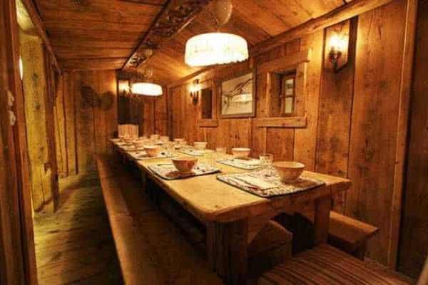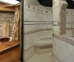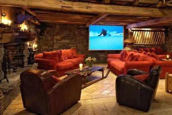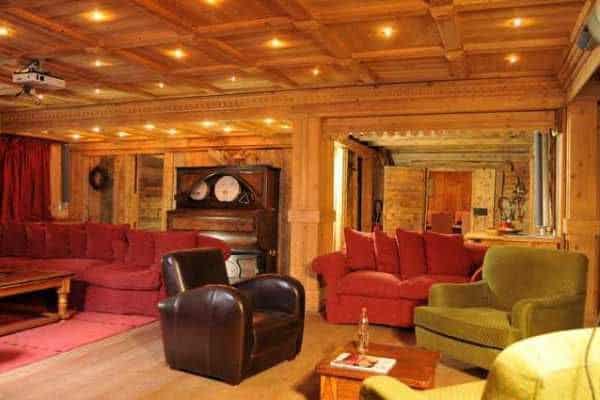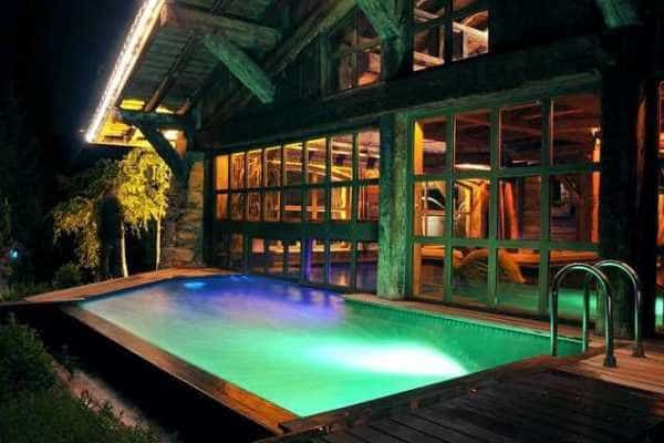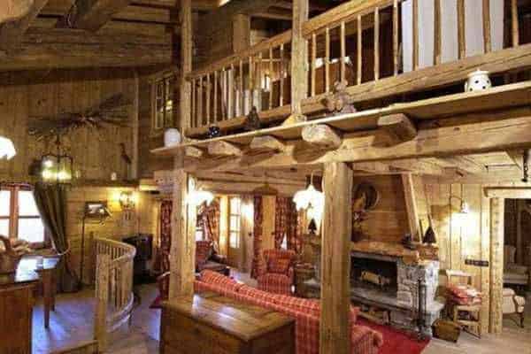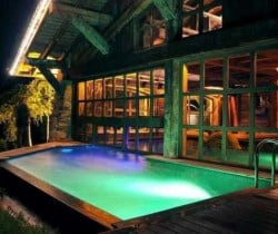 Located in Megève, nearby the ”Règne du Bon Dieu”, this luxury, huge chalet slowly appears through the mountains: a magic and idyllic place to stay, with an architectural feature of several floors, fitting perfectly the site, nestled among fir trees and suspended over the valley of Megève. This extraordinary property deserves to be spoken about in superlatives. Spread over 2,000 sq. m, this colossal seven-storey wooden chalet is unique and offers facilities that would be the envy of any large luxury hotel. Entirely built in timber wood, it definitely gives the impression of a 100 years’ old chalet, where each piece of wood reveals past stories and where the typical sounds of a family house resonate and radiate an incomparable charm. Each apartment and each room have their own unique decoration. Everything has been carefully and finely thought upon, every nook and alcove create their own cosy atmosphere. The large entrance hall makes the chalet a great place to hold a business meeting thanks also to a big sofa on the ground floor and the presence of a projector. Furthermore, a 20 seat conference room, a large cinema room and a fully equipped bar/disco complete the list of this extraordinary chalet. Upon your arrival, a water cascade will plunge you straight into the atmosphere of the chalet which is focused precisely on water, sport and relaxation. It is ideal for those who love sport as it offers an excellent infrastructure and facilities such as a swimming pool, spa, sauna, fitness centre, all right next to the ski slopes.