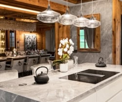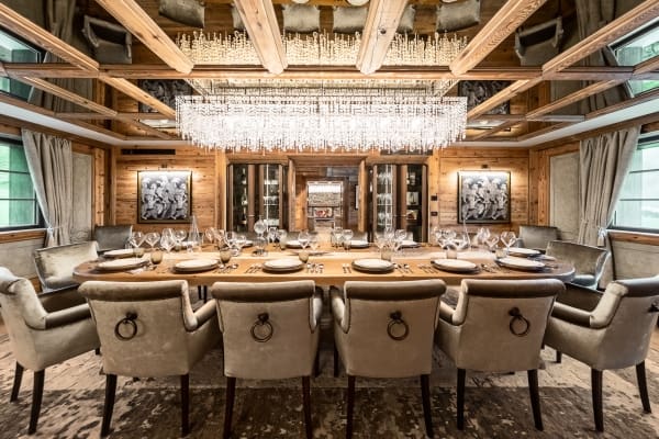 The chalet has six levels, an elevator, 1,200 sq. m of luxurious living space and sleeps up to 14 adults and 2 kids in 7 prestige bedrooms en suite. Each one is appointed beautifully with a distinct ambience; whether tucked under the eaves or expansive like the master suite in which the walk-in closet includes a sitting area. Similarly each en suite is unique, with fabulous top-range fittings and fixtures. Unwind around the fireplace with fine wines from the cellar, then indulge yourselves even more down in the spa, or step outside with a bottle of bubbly to soak in the amazing steel Jacuzzi on the terrace which is strategically positioned to take full advantage of the chalet’s stunning surroundings, ensuring a sense of seclusion, tranquillity and luxury. Bespoke in-house service includes chefs, housekeepers and manager to cater for your every need and a chauffeur service is also available.