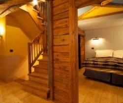 If Courmayeur is the place you want to visit on your next holiday, then this is the perfect luxury chalet to rent. Part of a chalets resort which has been recently developed by a local family of entrepreneurs, this cosy yet warm individual chalet has been built and furnished with utmost attention to tradition and quality. With a grand view of the Mont Blanc and few minutes from the town centre and the cableway, these chalets are perfectly located to make the most out of your stay. The properties are constructed in stone and wood and enriched with traditional wood decoration, furniture and fabrics. There are 10 private chalets of different sizes, from approximately 100 sq. m to 250 sq. m (from 4 to 10 people). All guests have access to the wellness centre, fully equipped with sauna, steam bath, multi-sensory shower, relax area, massage rooms where excellent beauty treatments can be arranged. The estate is also endowed with an indoor swimming pool with waterfall, hydromassage, upstream swimming and a small pool for young guests; French doors allow access to the solarium where you can enjoy an incomparable view of Mont Blanc. A nice bistro offers delicious food and catering service. Buffet breakfast and an on-line shopping service are available for the lazier guests. All buildings are connected by typical mountain village stone paths, giving access also to the resort’s facilities and services, such as the reception, the bar, the ski-room (equipped with bootwarmers), concierge services and the garage.