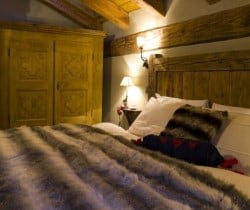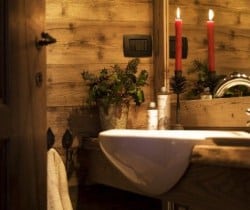 This luxury chalet is the bigger of the resort, distributed on three levels and can accommodate up to 8 guests in 4 double bedrooms. The rooms’ distribution and the duplication of the living spaces and kitchen make it an ideal accommodation for 2 families, maintaining independence and privacy but aiming at enjoying each other’s company without having to go out, if you don’t wish to in the cold winter evenings. A wine cellar can be stocked upon wine lovers’ request; canapés with local cheese and delicacies can accompany a wine tasting, organised on site for a great and different evening.