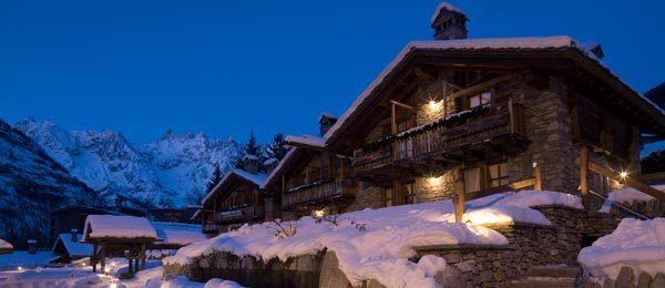At last you can spend your winter holidays in a luxury chalet in Courmayeur! This group of chalets is part of a resort which has been recently developed by a local family of entrepreneurs, with utmost attention to tradition and quality. With a grand view of the Mont Blanc and a few minutes from the town centre and the cableway, these chalets are perfectly located to make the most out of your stay. The properties are constructed in stone and wood and enriched with traditional wood decoration, furniture and fabrics. There are 10 private chalets of different sizes, from approximately 100 sq. m to 250 sq. m (from 4 to 10 people). All guests have access to the wellness centre, fully equipped with sauna, steam bath, multi-sensory shower, relax area, massage rooms where excellent beauty treatments can be arranged. The estate is also endowed with an indoor swimming pool with waterfall, hydromassage, upstream swimming and a small pool for young guests; French doors allow access to the solarium where you can enjoy an incomparable view of Mont Blanc. A nice bistro offers delicious food and catering service. Buffet breakfast and on-line shopping service are available for the lazier guests. All buildings are connected by typical mountain village stone paths, giving access also to the resort’s facilities and services, such as the reception, the bar, the ski-room (where you can find bootwarmers), concierge services and the garage.