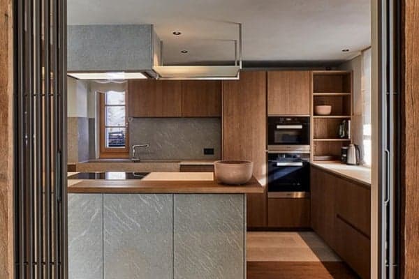 The modern alpine apartment, tastefully decorated in warm and neutral tones, and beautifully finished in handcrafted wood, can accommodate up to 6 adults in 3 king, en suite bedrooms. The open plan living and dining area features a roaring fire that guests will take pleasure in socialising around.