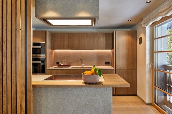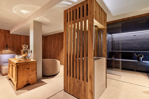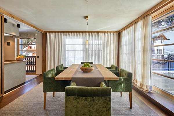 Within a stone’s throw from the town centre of Corvara is an impressively modern alpine chalet complex, fashioned from a harmony of high-quality wood, “piasentina” stone and luxurious fabrics. The property is furnished in relaxing, tastefully muted tones and features a pleasing array of mod-cons.