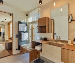 The apartment is bathed in sunshine for most of the day, and this bounty of natural light is most apparent in the glass-fronted living & dining areas, and the fully-equipped kitchen. The property is able to accommodate 4 people in 2 beautifully-designed en suite master bedrooms that feature king size beds. The lower ground floor offers an extensive, wood-panelled spa area complete with a Finnish sauna, a hammam with ice cascade and massage room, a state-of-the-art Technogym fitness room, and even a sensorial aromatherapy shower. The relaxation area is completed with a reading room; perfect for a few stolen, peaceful moments!