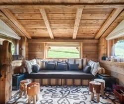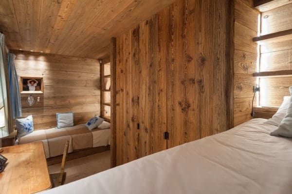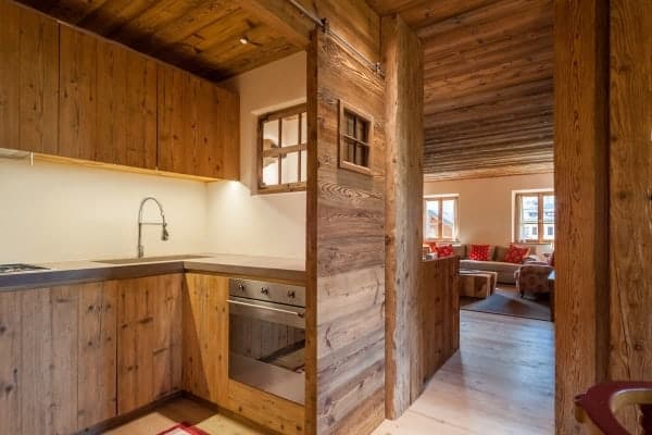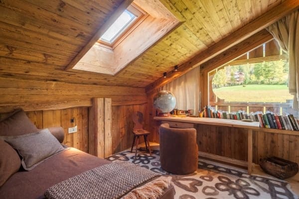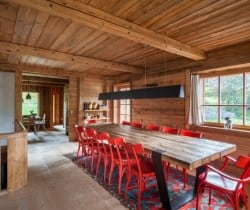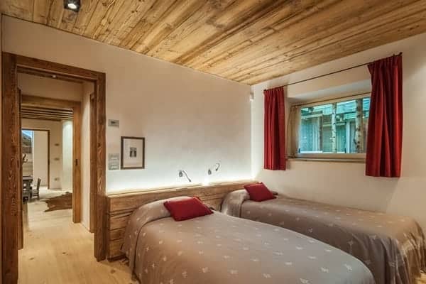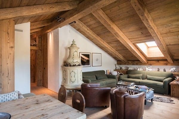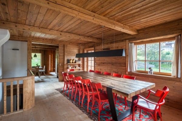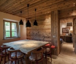 The luxury chalet comprises 5 floors and can accommodate up to a total of 20 guests (12/14 adults and 4/6 kids) in 9 bedrooms, which include a generous lower ground bunk bedroom (sleeps up to 4 people) and an independent master suite (with living areas, a kitchenette and a terrace with a stunning view on the 5 Torri) expertly arranged under the eaves. All rooms are furnished with great taste and a passion for detail and the artfully arranged bathrooms are fitted with designer fixtures and neatly set into wood surrounds. Family meals can be as fun and as grand as you wish around the antique wood dining table, which seats 14 on carved and crimson chairs. Overhead, a slither of light spans the full length of the table that will add flourish to any occasion. The garden and terrace burst with colour during the Spring and Summer offer are beguiling spaces for al fresco relaxation and socialising, as well as tempting opportunities for building snowmen with the kids in the Winter.