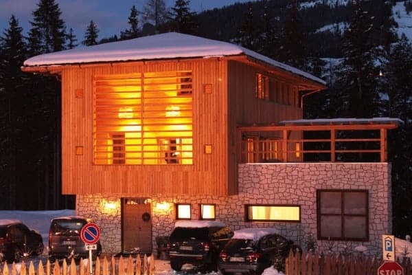 Here is an unusual and quite unique luxury garden chalet, composed of cubic and modular sections made from forest wood and the local granite stone for which the Dolomites are famous.  This luxury chalet is located in La Villa one of the main villages of Val Badia, the core of the breathtaking Dolomites. From here you can access the network Dolomiti Superski; one lift pass covering all the 12 ski areas of the entire region that amounting to a colossal 1220 km of pistes, 450 ski lifts known as Sella Ronda. The world-famous UNESCO protected Alta Badia also offers amazing walks, treks and sport activities in the summer months, don’t miss it, as you will be positively surprised.  The property is also perfectly located to enjoy the gastronomic excellence of the region, with 3 Michelin-starred restaurants just a few minutes’ drive away. Constructed and designed on ecological awareness and sustainability within the South Tyrol, there is a warmth and ambient stillness to the angular rooms with polished wood floors, large windows and glazed doors to the outside. Complementing the design its highest quality of furnishings, which are set with great attention to detail in this neat and cosy family alpine residence.