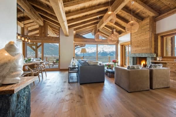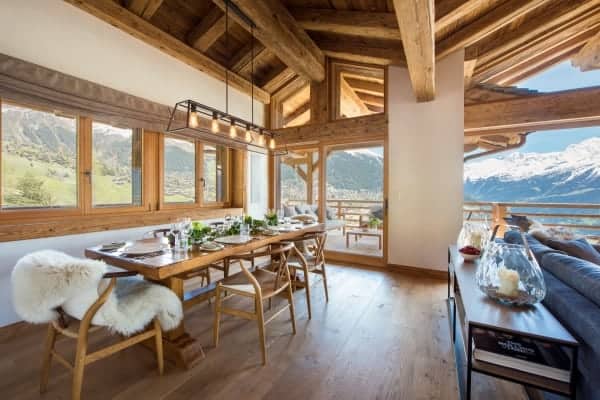 This brand new and architecturally-stunning chalet is built into the mountainside above Patier, and commands awe-inspiring floor-to-ceiling views over the drama of the surrounding Alps. After a long day out on the slopes, guests will love socialising around the fireplace in the spacious open-plan living and dining area, where huge wooden beams, panoramic glass windows and plush, modern furnishings mix to impressive effect.