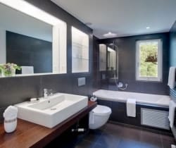 This large flat boasts three en suite bedrooms which accommodate 6 guests. Top quality decor and contemporary furniture dress the space in an uncluttered and elegant style and enhance the views of the Matterhorn and surrounding forest outside. Simple and chic thanks also to the use of light colours throughout the flat, combined with dark wooden floors and spacious modern bathrooms.