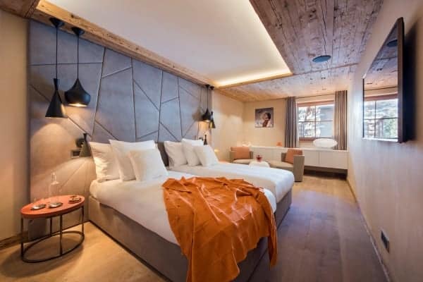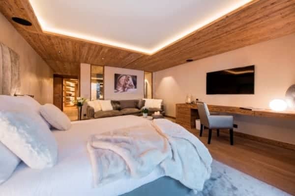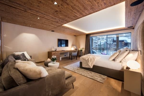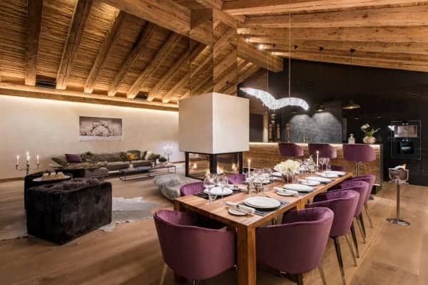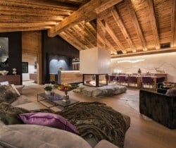 Set out over four floors, this chalet features authentic timbers that have been harmonised beautifully with plush furnishings and modern technology to create the ultimate luxury alpine residence. A log fire acts as a warming centrepiece in the private living area. Picture windows open onto the balconies, perfectly framing the enchanting panoramic views of the Matterhorn, Zermatt village, and the Alps. Step into your very own private spa and wellness area on the top floor to find a sumptuously-designed indoor hot tub and sauna – the perfect antidote to the wintry world that lies beyond the walls of the chalet.