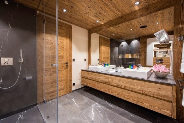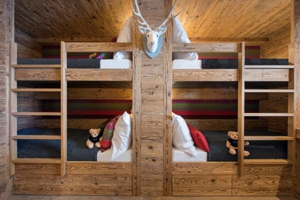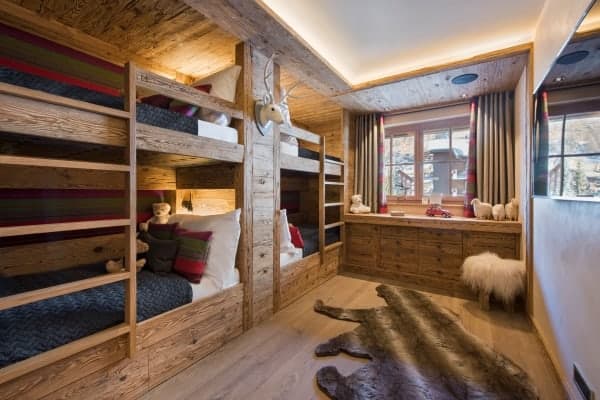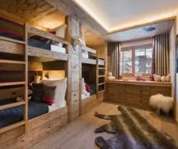 Every detail is taken care of to provide a perfect skiing retreat, with the inclusion of heated boot warmers in the Ski room on the first floor. The residence features four double bedrooms, all en suite, and a charming quad bunk room for children, with an en suite shower. The main master bedroom has an additional dressing room, and the first floor even boasts a cosy TV room. The chalet itself can be rented in conjunction with the neighbouring property, creating a combined accommodation for 24 people in 10 en suite bedrooms. This makes the property perfect for large groups or families who are looking for a warm and opulent base to share within the world-famous winter wonderland of Zermatt.