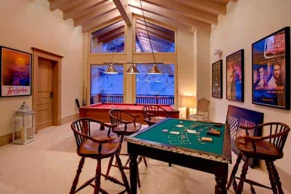 | Top floor: | Games room with pool table; cinema room; living room with fireplace and balcony; dining room with balcony; kitchen |