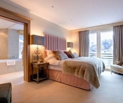 This luxury chalet can accommodate up to 12 guests in 5 spacious and luxury en suite bedrooms. The uninterrupted view of Zermatt below and the Matterhorn at the end of the valley is the scenery of the large and stylish living area where you will enjoy each other’s company around the French stone fireplace or with a glass of wine in the bar area. Light and music will delight you in the fantastic spa area that continues outside with a outdoor Jacuzzi hidden in the snow and dominated by the surrounding peaks.