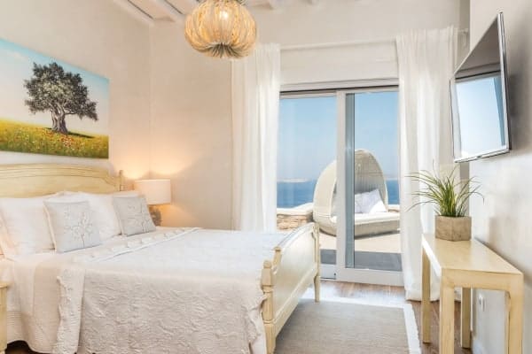 At this property, which boasts a stunning view over the Island of Delos (one of Greece’s most important mythological sites), detail is everything. From the welcome basket that guests receive upon arrival to the carefully-selected furnishings, everything has been subject to a keen and discerning eye.