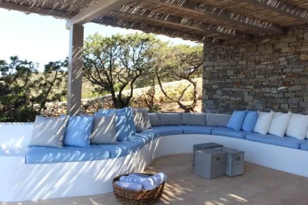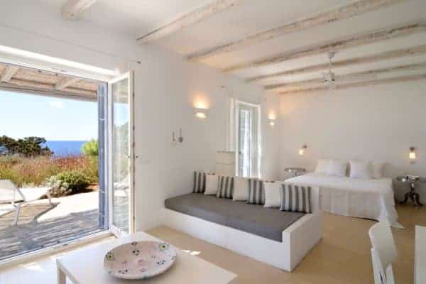 The sun sets into Antiparos giving beautiful colours each afternoon which you can watch from the terrace while enjoying your drinks.