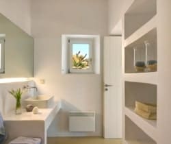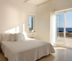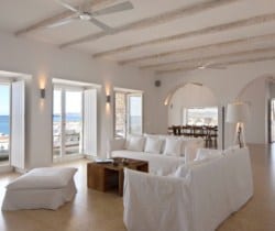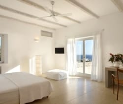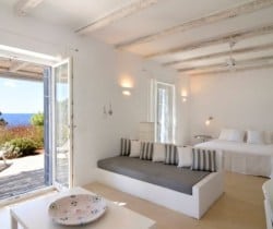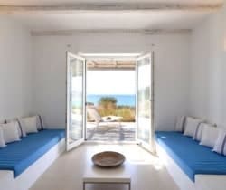 Two independent guesthouses at the garden level of the villa with sea view. The living room has spacious windows all leading to the front terrace with its infinity pool overlooking Faragas bay and Faragas beach.