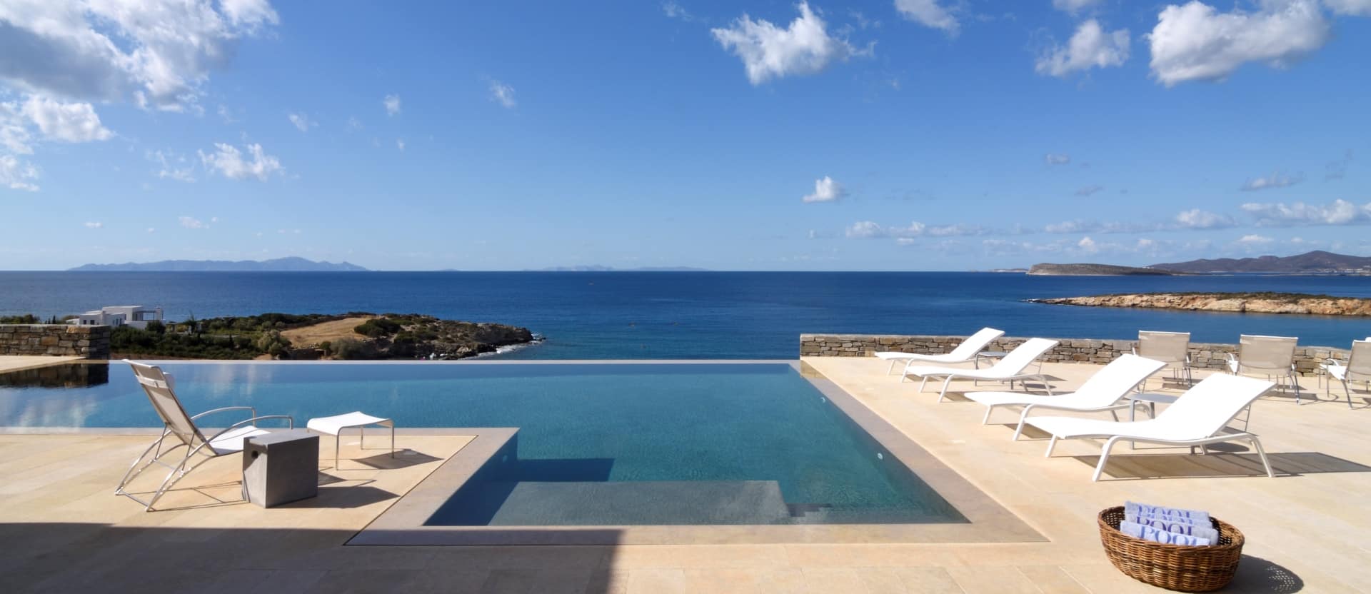 The property is spacious but at the same time perfectly balanced. It is large but convivial, minimal modern but yet warm, stylish yet comfortable. It offers two very large master bedrooms with sea view and generous bedrooms and bathrooms, huge dining tables, queen size sun loungers.