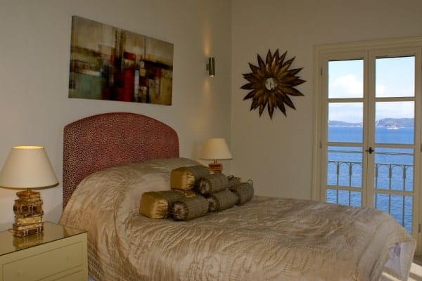 The convivial seating and dining areas extending from the villa encourage complete relaxation within a refined setting. A pretty stone path winds slowly through the evergreen foliage of Cypress trees and Holly bushes to the beach and crystal clear water waiting invitingly. A private pier extends itself from the shore, welcoming a visiting yacht or providing a useful swim platform for that refreshing urge to dive in.