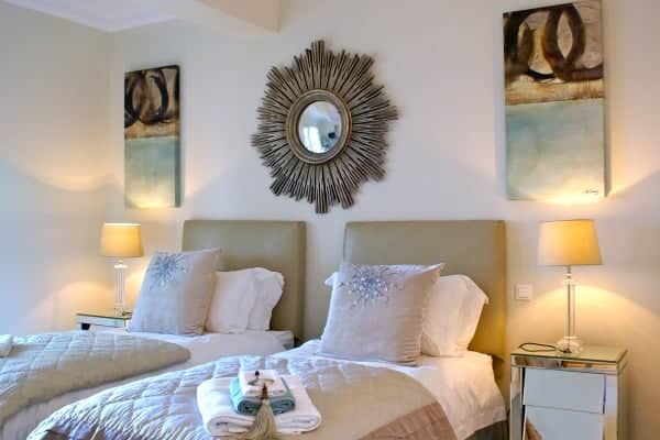 | Lower ground floor: | 2 twin bedrooms en suite; Master king-size bedroom sharing a bathroom with a twin bedroom; Double bedroom en suite; twin bedroom with shared bathroom; Media and entertainment room; Gym; Sauna |