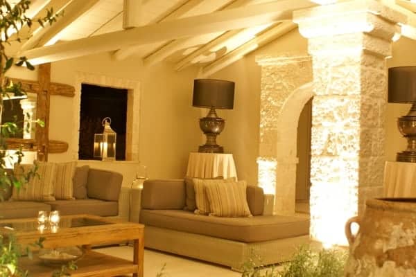 Soft creamy colouring and gentle shades of taupe and grey soften the stone and relax the mind. The quiet babble of a water feature within a dramatic interior courtyard lends a feeling of the out of doors, playing on the senses like a happily flowing stream.