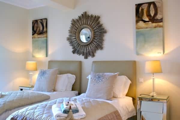 | Lower ground floor: | 2 twin bedrooms en suite; Master king-size bedroom sharing a bathroom with a twin bedroom; Double bedroom en suite; twin bedroom with shared bathroom; Media and entertainment room; Gym; Sauna |