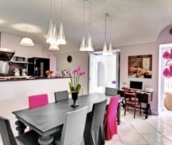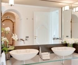 Four beautiful en suite bedrooms sleep up to 8 guests, with a remarkable match of colours. There are two spacious living rooms, one of which is equipped with a TV and that can be transformed into an extra twin bedroom, prior to approval. A fully equipped professional kitchen and an outside plunge pool, will provide a great setting for a relaxing holiday away from the hustle of the surrounding area. The cherry on the cake of this luxurious villa is a temperature regulated indoor pool with chromo-therapy and aromatherapy which will satisfy the most discerning clients. The luxuriant greenery all around the house and on the beautiful and welcoming terraces is pure pleasure for your senses, while the sun setting down in the sea right in front of you will give you moments of ecstasy In the evenings, the chef and the staff will be happy to pamper you with fine dinners served on the delightful terrace.