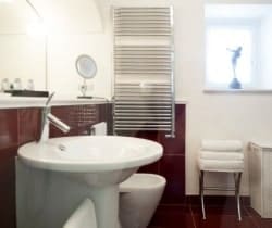 | First floor: | Double bedroom en suite (shower) with small covered balcony; double/twin bedroom en suite (shower/hammam and cromotherapy); double bedroom en suite (double shower) with terrace |