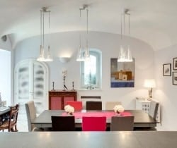 | Ground floor: | Living room with TV (convertible, on request, to a double/twin bedroom); living room with sound system and access via few steps to indoor heated plunge pool; dining room with open kitchen; cloakroom; staff cloakroom; double bedroom en suite with small terrace |