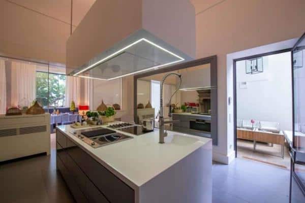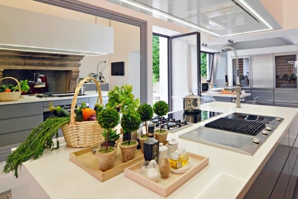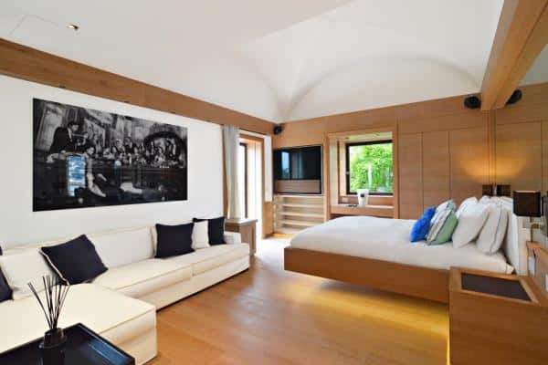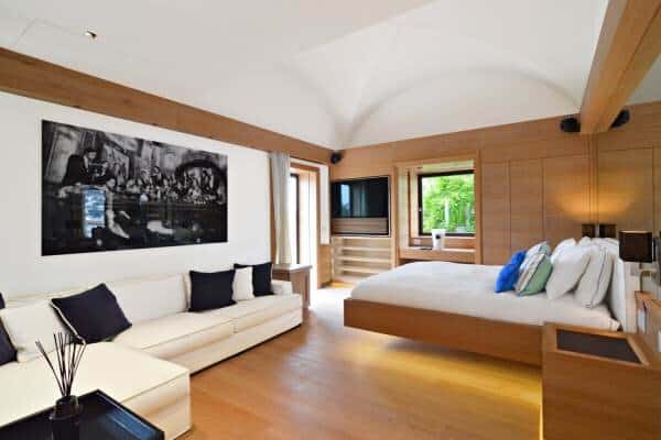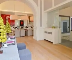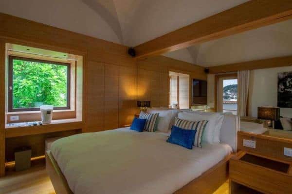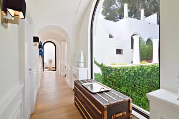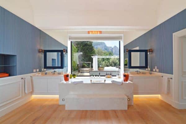 Arguably one of the most exclusive homes in one of the best locations on Capri, this luxury villa is immersed within an inspired Mediterranean garden overlooking the bay of the Bay of Naples and the island’s iconic rock formations known as the ‘Faraglioni’ jutting up and out from the iridescent aquamarine sea. All of that is in view from this singular luxury villa situated in the corner of the island first colonised with palatial properties of ancient Roman emperors. Today’s the island still attracts upscale visitors and residents inspired by the serene beauty of this region. This is a sparkling luxury villa, inside and out, with classic architectural lines and ample glazing and terraces tiered from the rooftop down to the teak decking of one of two swimming pools here. Farther down, a revelatory subterranean wellness area, carved from exposed hill rock with a modern plunge pool, a hammam fitness and massage areas. The interior design takes full advantage of the building’s main architectural characteristics, including enfilade high-ceilinged rooms. The senses are of a free-flowing spaciousness bathed in natural light and scattered with art masterpieces adorning the high walls. Bespoke designer furnishings include fine upholstered and cushioned sofas. A two-bed guest house, which is set apart from the main building, gives another boost to the villa’s luxury stakes as does its highly contemporary kitchen; spacious and bright, suitably high-tech and professionally kitted out.