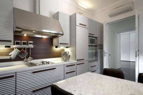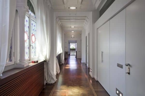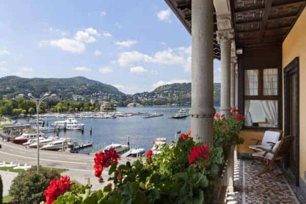 The bustle of everyday life is never far away from this luxury apartment that has a balcony overlooking the colourful spectacle in and around the majestic Piazza Cavour and the Como harbour. You can see, but will be unlikely to hear any noise from this elegant third-floor apartment of an aristocratic a 1920’s mansion in the heart of romantic town and at the Comolakefront. An hour by car from Malpensa and Linate airports and a mere 10 minutes away from the world-famous Villa d’Este, the apartment is conveniently located, a few steps from the cathedral and a leisurely 10-minute amble to the train station: which can come in handy for shopping jaunts to Milan. Yet, guests may never feel the need to venture far as all around are elegant boutique shops, trendy cafes, bars and restaurants, while boats docked nearby are ready and waiting to whisk you around the lake. The building’s architecture suggests a strong Venetian influence and its tiled balcony overflows with geranium to give added embellishment to the admirably beautiful panorama of lake, mountains and sunset. The apartment underwent careful restoration, with a lot of fine detailing done by hand, to retain its original style and elegance. An addition of abundant luxury features, which include a self-contained sauna with Jacuzzi tub, are incorporated and fit seamlessly within a tasteful interior décor that is further enhanced with modern pieces of art and contemporary lighting. Gleaming parquet floors, sparkling white walls and double-glazing with framed in delicate colours contrast harmoniously with the pristine white of luxury fabrics, drapes and upholstery. Guests may arrive to the apartment directly by elevator or go up via a grand marble staircase with an ornate and gated portico, whilst there is covered parking (for 2 cars) outside.