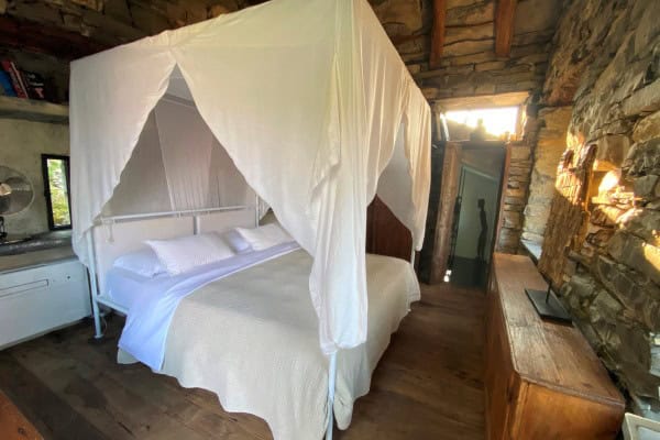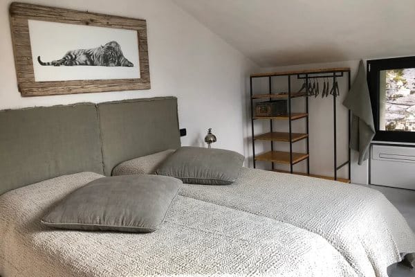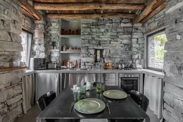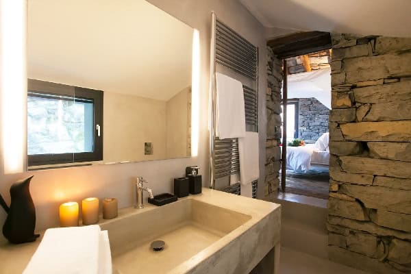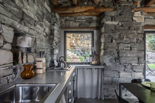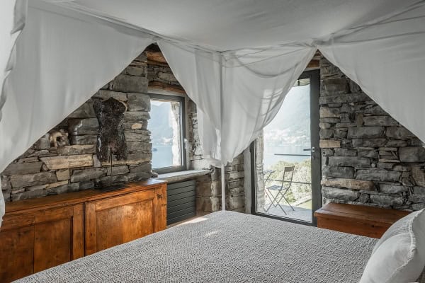 Here is a “must see” and “must stay” luxury villa for anyone seeking privacy and blissful seclusion, particularly those who enjoy trekking up through forested mountains and scenic walks high above and around an alpine lake. As a holiday rental it may be less suitable for families with infants and small children due to the amount of vigilance required outside and within: there is a steep drop from the roped garden terrace and a main stone staircase with open bannisters.