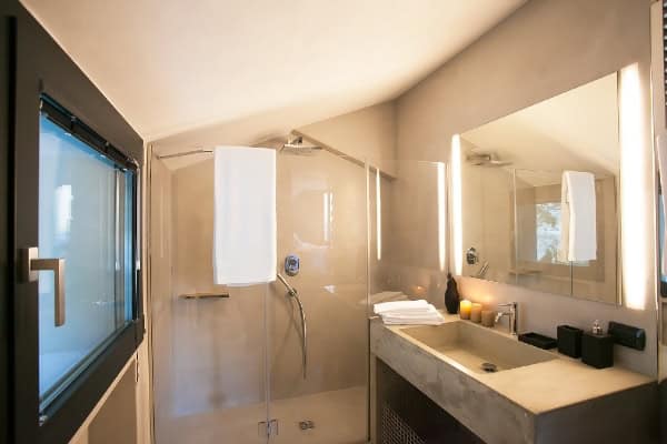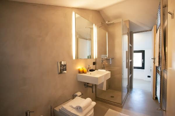 This is a unique luxury villa that accommodates a maximum of 6 guests. The master bedroom on the first floor is under the eaves in the old section of the villa and, subsequently, has a more rustic style and its privacy enhanced by direct access to a garden terrace. The combination of original exposed stone on walls and ancient wood and beam ceiling is a prime feature of this bedroom and also the kitchen, which is directly below. The kitchen’s modern appliances are craftily arranged into the original structure and, from there, glazed doors provide seamless connection to the contemporary living/dining area (with fireplace) in the annex and to the garden. Outside the main garden terrace is a lovely and tranquil setting, with a simply stunning view, for indulgent relaxation, or massage, or yoga. An al fresco dining area, with large stone table (sits 8) and barbecue, is arranged on a terraced lawn for guests to enjoy the scenery over long and leisurely meals. You can burn up the calories with a walk up to the top of Monte Piatto (‘flat mountain’), of which the main path is conveniently close to the villa or enjoy the silence of nature by the new outdoor pool and the terrace with hot/cold water shower and relaxation area.