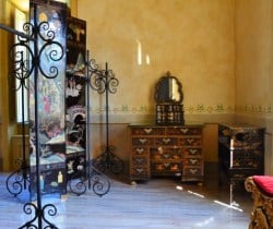 | First floor: | Gallery with sitting areas and lake views; Music room with Grand Piano; Kitchenette; Master bedroom suite: king size bed, living room with TV, lake and garden views, Walk-in dressing room; en suite marble bathroom (shower); Guest suite: king size bed, access to the terrace, walk-in wardrobe, en suite marble bathroom (tub and separate shower) |