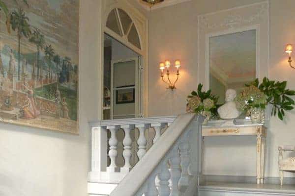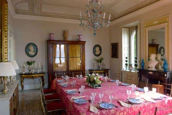 One of the largest properties on Lake Como is a luxury villa at waters’ edge presents an imposing residence situated in the picturesque and sleepy lakeside village of Blevio (no shops nor cafes but a lovely restaurant!): a mere 3 km from the bustling and lively centre of Como town and within conveniently easy reach of Milan, the cathedral of shopping and design an hour’s drive away, or the historic delights of Venice and the alpine heights of St Moritz. The imposing interior was restored – all original and irreplaceable windows unaltered – to retain an ambience of ‘old world’ charm; an atmosphere enjoyed by Emperor Joseph II of Austria, who in 1769 resided here when he was dazed by the beauty and serenity of this place. Not only is there outstanding security and seclusion, but also inside the villa are numerous living areas (including a music room with a grand piano) with beautiful frescos and admirably spacious. The villa’s gated entrance is at the top of a long and meandering driveway, which ends in an underground tunnel car park that has elevator access. With excluding high and original stone walls marking the property’s upper boundary (the lake is its lower) the rest of the World will seem far off from within the enormous botanical garden: an idyll of forested slopes, gently sloping and wide gravel paths, exotic and rare trees and plants, many of which date back to the original owner. The lower garden terrace is an unbelievably beautiful setting for romantic Spring and Summer weddings and extraordinary of celebrations. Farther along the upper garden an unusual C-shape swimming pool has the advantages of admirable privacy and uninhibited view of the lake and surrounding mountains. This special luxury villa can be best appreciated by holidaymakers wanting to relax in an ambience far-removed from the modern-day bustle and technology, accompanied by an informal, high-level professional service.