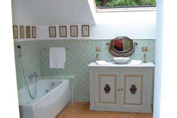 | Top floor (mansard): | Twin bedroom with skylight and double bedroom (with adjoined single bed) sharing a bathroom (shower and Jacuzzi tub); 2 Twin bedrooms sharing a bathroom (shower) |